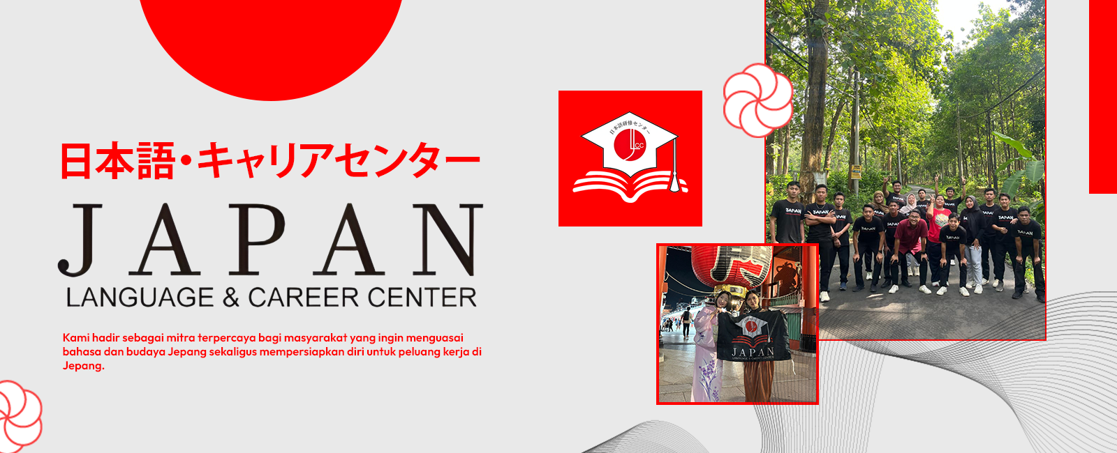 Japan Language & Career Center adalah lembaga pendidikan dan pelatihan unggulan yang berlokasi di Jl. Raya Subah, Kauman, Subah, Kecamatan Subah, Kabupaten Batang, Jawa Tengah. Kami hadir sebagai mitra terpercaya bagi masyarakat yang ingin menguasai bahasa dan budaya Jepang sekaligus mempersiapkan diri untuk peluang kerja di Jepang.